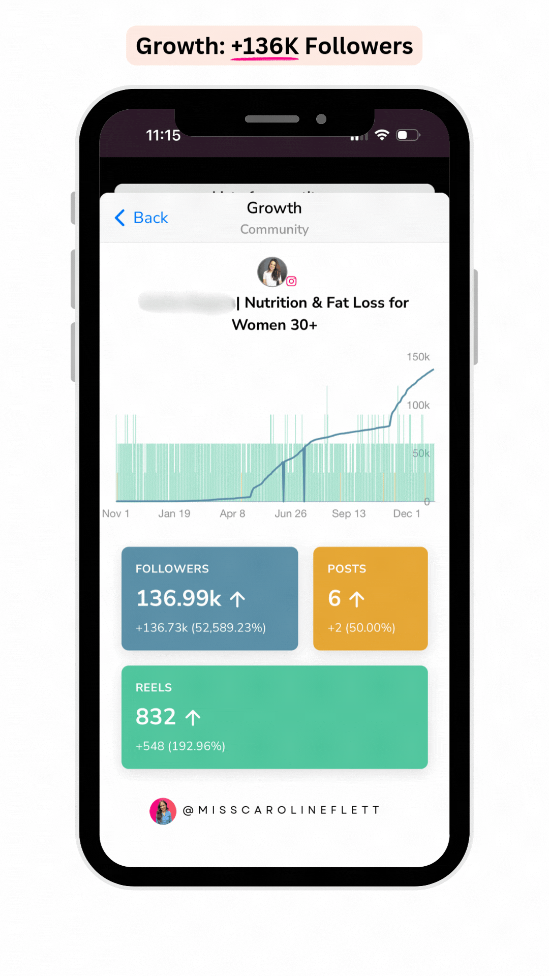 👆Kristen has been on IG for many years, and had done a ton of programs and courses. After being stuck for so long, she has now gained nearly 80K new followers since she started the program. It took 7 years for her to hit 50K followers, and 18 months to go from 50K to 130K followers 🔥. We did it by taking a new approach to content planning and posting, and leveraging her analytics using my Content Genius System™ and Content Banking System™ .