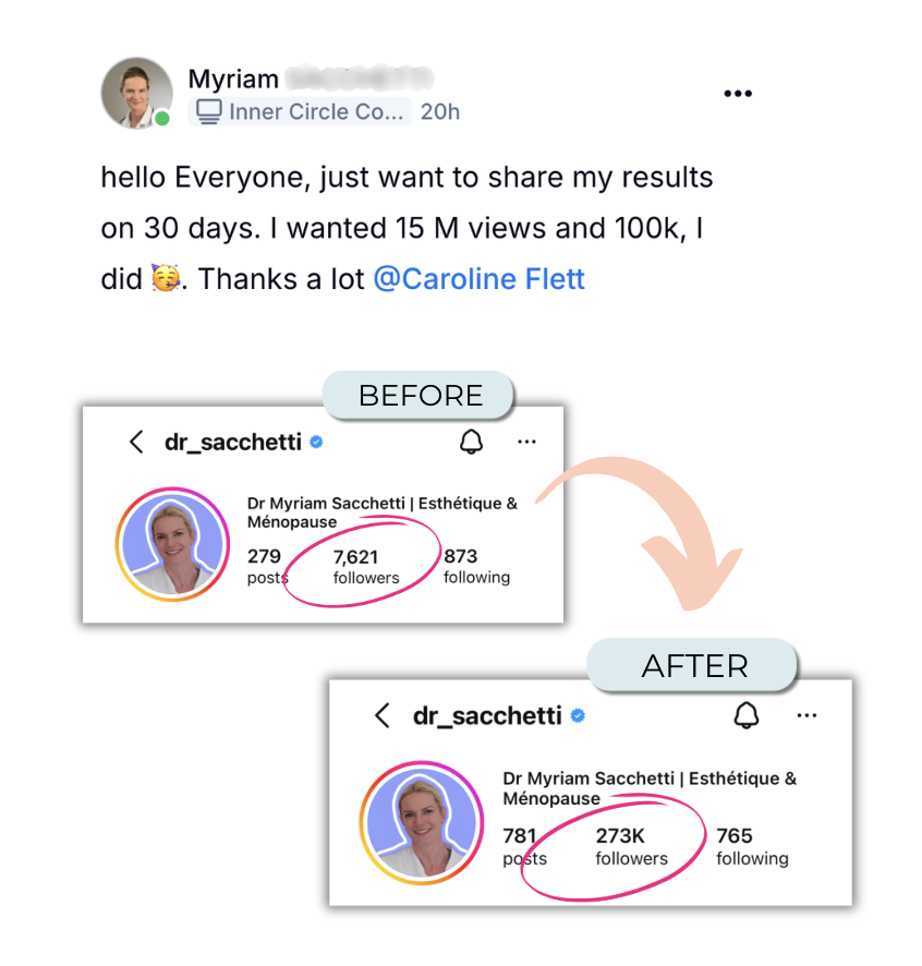 ⬆️ Myriam has grown 266K followers in 8 months since starting the Program and setting up her 7 Figure Content System™. She's also converted 85 clients at $197 to her new coaching offer, and gained 2500 email subscribers in just a few weeks after setting up her automations using our systems. She's now gaining an average of 1000 followers per day Using our Content Banking System™ 🎉.